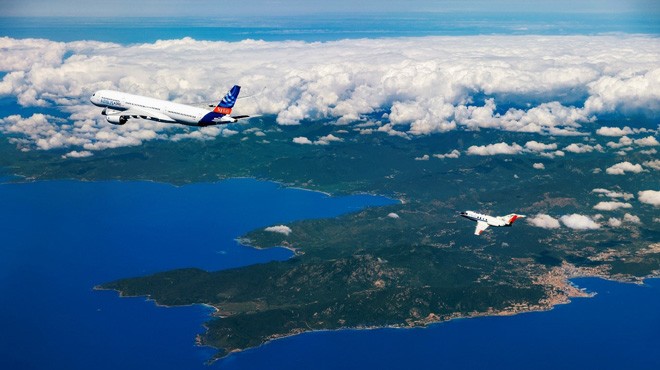 Nisan ayında A350, hem kerosen hem de Neste’nin Hidro-işlenmiş Esterler ve Yağ Asitleri (HEFA) sürdürülebilir yakıtının uçuş sırasındaki emisyonlarını karşılaştırmak için bir DLR Falcon takip uçağı tarafından Akdeniz üzerinde üç uçuş gerçekleştirdi. Ekip ayrıca yüzde 100 SAF kullanarak uyumluluk testleri gerçekleştirdi ve herhangi bir operasyonel sorun yaşanmadı.