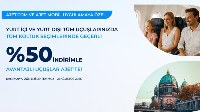 AJET Hava Yolları, yurt içi ve yurt dışındaki tüm uçuşlarda koltuk seçimlerinde yüzde 50 indirim yaptı.