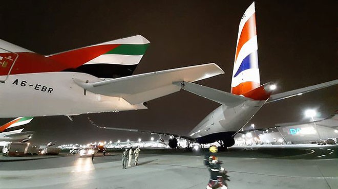 British Airways ve Emirates uçakları Dubai Havalimanı’nda yerde çarpıştı