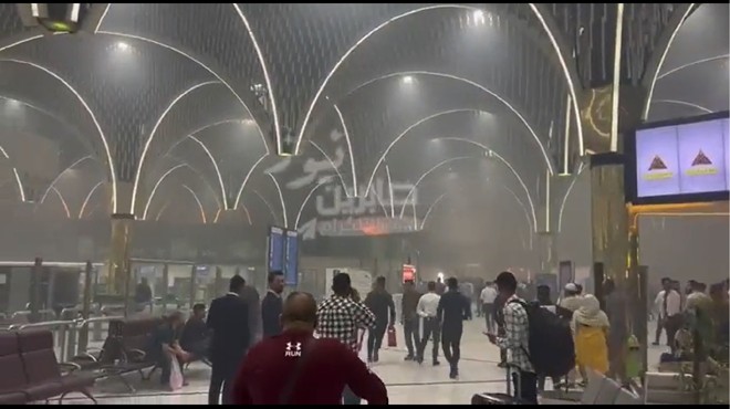 Sosyal medyada yayınlanan görüntülerde terminalin içerisinin yoğun dumanla kaplandığı, yolcuların panik yaşadıkları görülüyor.