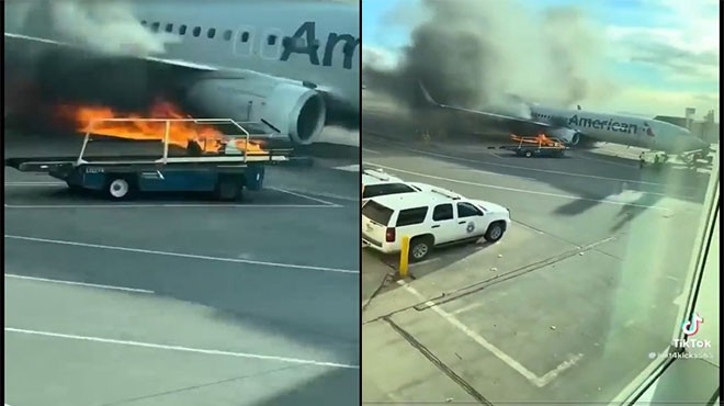 American Airlines’a ait Boeing 737-800 uçağı, Denver Uluslararası Havalimanı apronunda alev aldı.