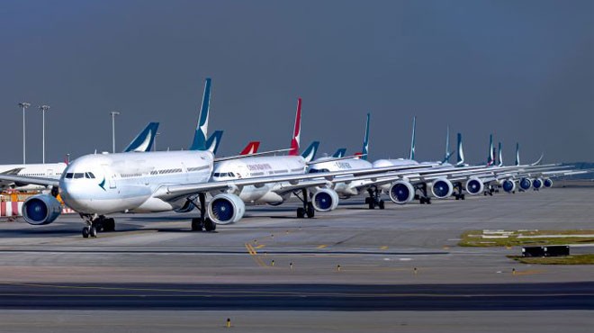 Birçok havalimanında uçuştan çekilen uçaklar pistlere ve taksi yollarına park edildi