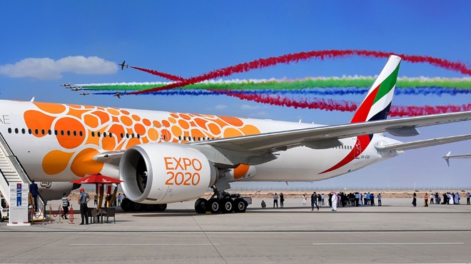 Emirates, etkinliğin ilk günündeki açılışta, Expo 2020’nin 'sürdürülebilirlik' temasını temsil eden yeşil renkle kaplanmış bir Airbus A380 uçuş gösterisi ve ardından BAE’nin hava gösteri ekibi Al Fursan’ın gösterisi ile ziyaretçilerine uçuş keyfi yaşattı.