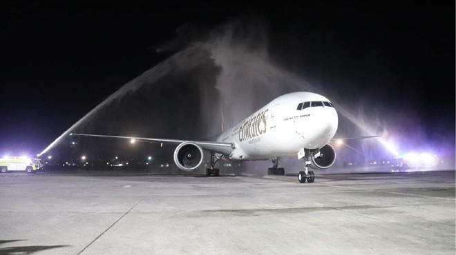 Emirates’in EK398 sefer sayılı uçuşu 1 Mayıs saat 22:20’de Denpasar Uluslararası Havalimanı’na iniş yaptı ve şirketin geri dönüşünü kutlamak için görkemli bir su takı ile karşılandı. Uçuşta görev yapan kabin ekibi ve yolcular havalimanında Bali’nin benzersiz kültürünü ve zengin mirasını yansıtan geleneksel joged bumbung dans performansıyla karşılandı ve ardından DPS Havalimanı’ndan temsilcilerin katılımıyla bir pasta kesme merasimi gerçekleştirildi.