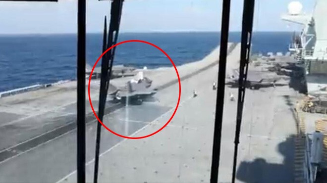 100 milyon Sterlin (130 milyon Dolar) değerindeki F-35 jeti, kalkışa hazırlanırken Akdeniz'e çakıldı ve bir anda suya gömüldü. Savaş uçağını kullanan pilot fırlatma koltuğunu kullanarak ölümden son anda kurtuldu.
