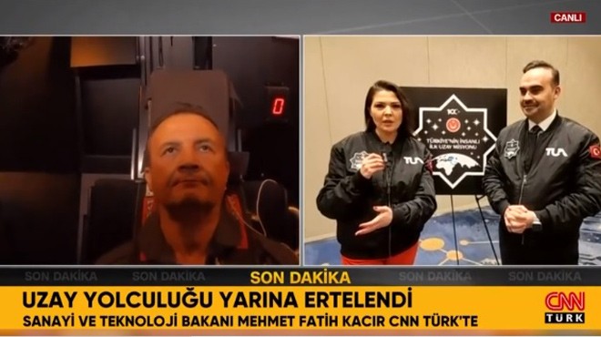 Sanayi ve Teknoloji Bakanı Mehmet Fatih Kacır, Alper Gezeravcı'nın uzay yolculuğunun yarına ertelenmesine ilişkin CNN Türk'te açıklamalarda bulundu.