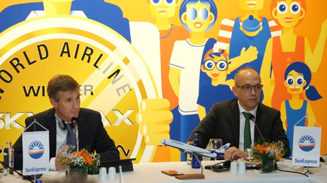 SunExpress CEO’su Max Kownatzki ve SunExpress Genel Müdür Yardımcısı Ahmet Çalışkan, Skytrax Dünya Hava Yolu 2022 Ödülleri’nde “Dünyanın En İyi Tatil Hava Yolu” ödülünü kazanmalarından dolayı Antalya’da 2022 operasyonunu değerlendirdikleri ve 2023 planlarını açıkladıkları bir basın toplantısı düzenledi.