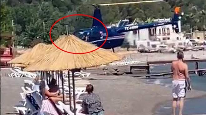Marmaris Kumlubük Koyu’na önceki gün sahildekilerin şaşkın bakışları arasında bir helikopterin inmesi, sosyal medyada paylaşıldı. Görüntülere tepki yağarken “Marmaris’te plaja, insanların hayatını da tehlikeye atarak akşam yemeği için inen helikopter” yorumları yapıldı. Helikopterin otelin yanındaki yat kulübüne müşteri getirdiği ve bu kişilerin yemek yedikten sonra bir tekneye geçtiği belirtildi. Helikopteri kullanan VAV Teknoloji’nin sahibi Temel Akçay’a Hürriyet Gazetesi ulaştı.