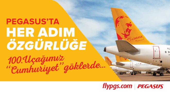 18 yıl önce “Uçmak herkesin hakkı” diyerek yola çıkan Pegasus Hava Yolları, Cumhuriyet'in 100. yılında göklere taşıyacağı 100. uçağı "Cumhuriyet”i kutlamak için hazırladığı yeni reklam filmini yayınladı.