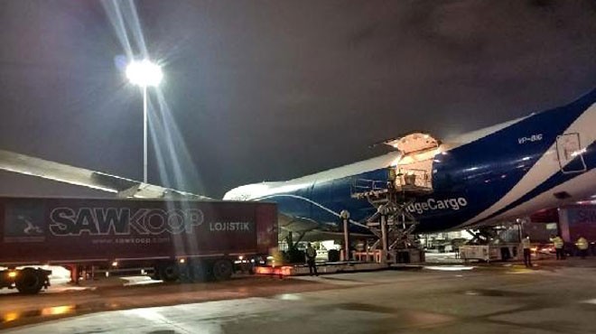 Organizasyon kapsamında kullanılacak araçları ve malzemeleri taşıyan kargo uçağı ilk seferini İstanbul Sabiha Gökçen Uluslararası Havalimanı'na yaptı. Air Bridge Cargo Airlines'a ait uçak dün saat 18.50 sıralarında Sabiha Gökçen Uluslararası Havalimanı'na iniş yaptı. DHA’da yer alan habere göre, kargo uçağından araçları ve malzemeleri nakliye işini Sabiha Gökçen Havaalanı Taşıma ve İşletme Kooperatifi (SAWKOOP) Lojistik şirketi üstlendi.