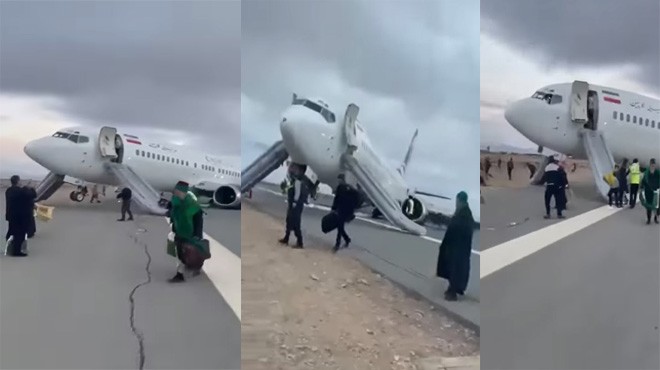 İranlı havayolu şirketi Caspian Airlines’a ait yolcu uçağı, iniş takımlarında yaşanan teknik arıza nedeniyle pistten çıktı. Yolcular uçağı slide’lardan kayarak tahliye etti