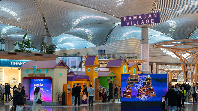 İGA İstanbul Havalimanı “Ramazan Şenliği” kapsamında pek çok etkinliğe ev sahipliği yapıyor. Terminalin hem İç hem de Dış Hatlar bölümlerinde konumlanan Ramazan Köyü, klasik etkinlik sınırlarını aşarak ziyaretçilerine hibrit alanlar sunuyor. Ramazan ayı boyunca 10:00 – 22:00 saatleri arasında açık olan bu noktada; kaligrafi ve ebru atölyelerinden çocuk oyun alanlarına, çizgi film gösterimlerinden nostaljik atlı karıncaya kadar geniş bir aktivite yelpazesi yolcuları bekliyor.