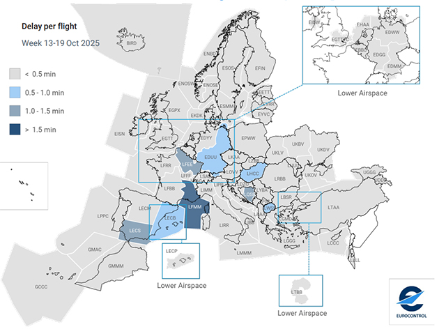 EUROCONTROL tarafından, 23 Ekim 2025 tarihinde yayımlanan Avrupa Havacılık Genel Bakış Raporu’nda yer alan “13-19 Ekim 2025” dönemi hava trafik istatistiklerine göre;