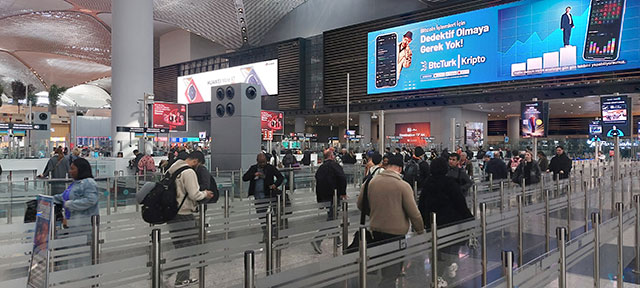 İstanbul Havalimanı iç ve dış hatlar terminalinde herhangi bir aksama yaşanmazken, kilit noktalardaki görevliler yolculara yardımcı oluyor.