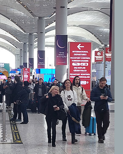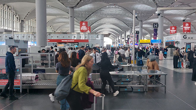 Okulların ara tatile girmesi ve arefe günü nedeniyle İstanbul Havalimanı’nda yoğunluk yaşanıyor.