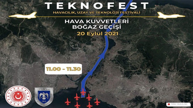 "Yarın (20 Eylül) saat 11.00-11.30 arası İstanbul'da gözünüz gökyüzünde olsun. TEKNOFEST öncesi Hava Kuvvetlerimize ait uçaklar ile Azerbaycan Hava Kuvvetlerine ait MIG-29 uçakları İstanbul Boğazı üzerinde selamlama uçuşu gerçekleştirecek."