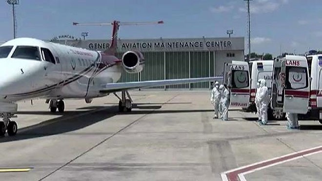 Koronavirüs hastalarını getiren ambulans uçak Atatürk Havalimanı'na indi