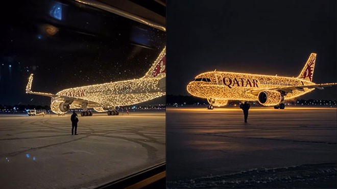 Qatar Airways, yılbaşı süsleri ile süslenen bir uçak görselini sosyal medya hesaplarından paylaştı.