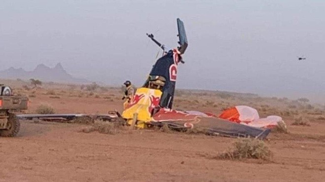 İki Red Bull uçağından biri, pilot değiştirme sırasında Arizona çölünde düştü.
