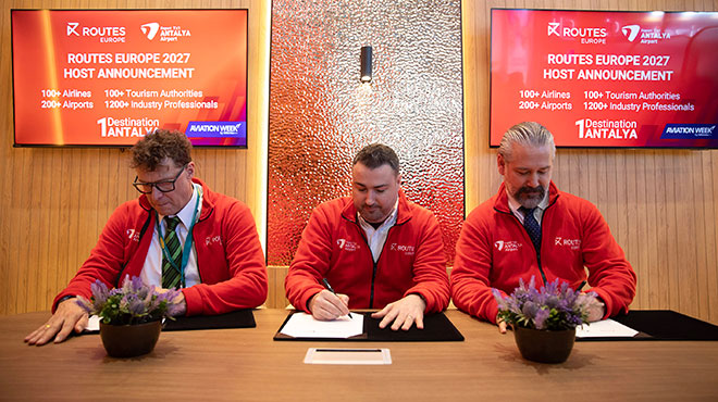 Antalya’nın ev sahipliği, ITB Berlin Fuarı sırasında havalimanı ve Routes yöneticilerinin katılımıyla düzenlenen törenle açıklandı.