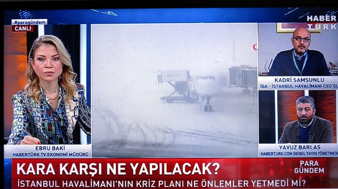 Bu işin özünde doğaya karşı iş yaptığınız için kar yağdığı zaman mücadele var. Bu mücadeleye havalimanları her zaman hazırlıklı, biz de hazırlıklıyız. 300’den fazla personelimiz, 130 aracımız hava tarafında kar mücadelesi veriyor. 2 saatte 20 santim, 7 saat aralıksız yağan bir karın sonunda 40 santimle mücadele etmek açısından uygun değil. Çünkü bu olağanüstü bir kar yağışı ve bu kar yağışının ilginçliği, sadece İstanbul’un batı tarafını vurdu. Çok şanslıyız ki sadece buradan geçerek güneye doğru indi. Bunun sonucunda da bizim havalimanımızda ciddi bir kar birikmesi oldu. Yağan karı anlamak açısından bir büyüklük söyleyeyim; Yağan karı bizim operasyon yaptığımız pist, apron ve taksi yollarından kaldırmamız için 100 bin den fazla kamyon hareketi gerekiyor. 5 milyon metre küplük bir kar birikmesi var şu an havalimanının hava tarafında. ve bu 7 saatte birikti.