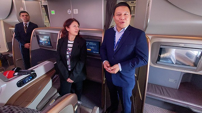 İstanbul-Singapur uçuşu öncesi gazetecilere İstanbul Havalimanı’nda Airbus A350 uçağını gezdiren Singapur Hava Yolları Türkiye Müdürü Hongyao Hu, uçak ve sundukları hizmetlerle ilgili bilgi verdi.