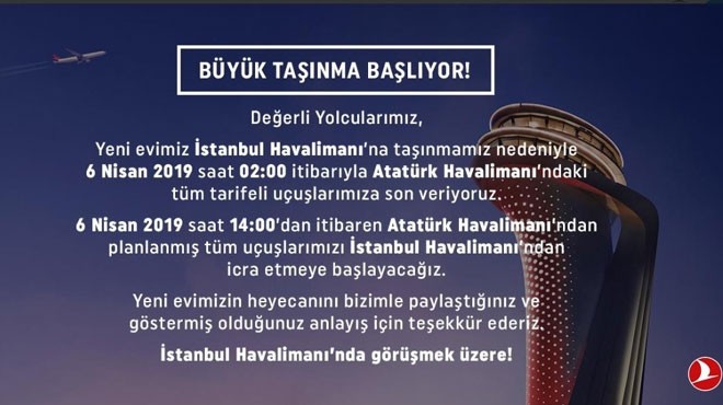 THY’DEN ‘BÜYÜK TAŞINMA’ DUYURUSU