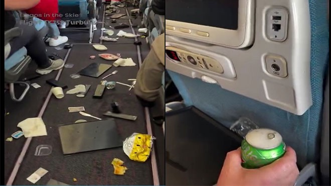 Uçağın koridoru dökülen eşyalarla dolarken, oksijen maskelerinin açılmadığı dikkat çekiyor. Bazı yolcular, uçuşun ortasında 10 metrelik ani bir serbest düşüş gibi hissettiren şiddetli türbülansla karşılaştıklarını söyledi.