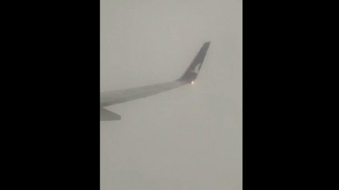 İstanbul-Antalya seferini yapan THY uçağına yıldırım isabet etti. O anlarda kayıtta olan bir yolcu, uçağa yıldırım düşmesini görüntüledi.