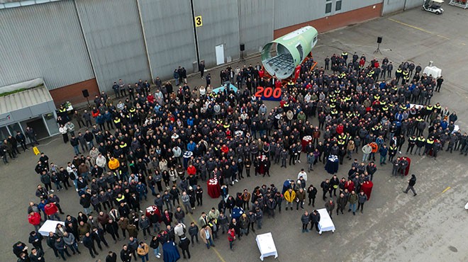 Türk Havacılık Uzay Sanayi Tusaş, Airbus A320 Ailesi S18/19 birleştirilmiş ünitenin 200'üncü sevkiyatını tamamladığını duyurdu.