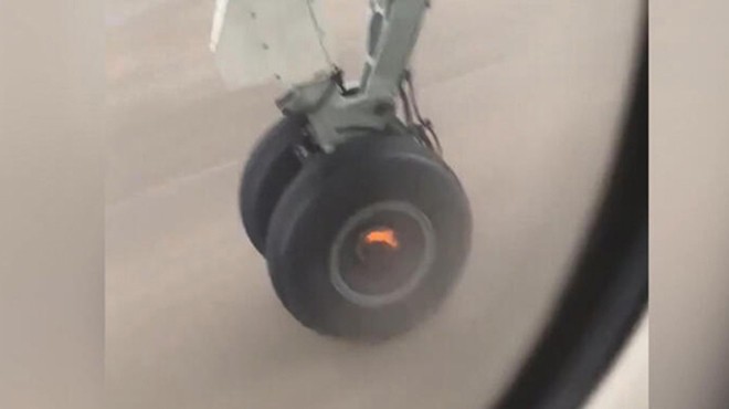 Kanada’da Montreal-Saguenay seferiyi yapmak üzere olan uçağın, pistten kalkışı sırasında iniş takımlarındaki tekerlerden biri düştü. O anlar bir yolcu tarafından saniye saniye kaydedildi