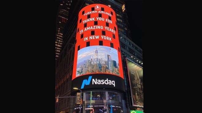 İstanbul-New York arasındaki direkt uçuşların 25'inci yıldönümü nedeniyle Times Meydanı'ndaki NASDAQ binası Türk Hava Yolları renklerine büründü. Binanın cephesinde THY’nin teşekkür mesajı yayınlandı. Mesajda Turkish Airlines yazısı ve logosunun altında “THANK YOU FOR 25 AMAZING YEARS IN NEW YORK “ cümlesi yer aldı.