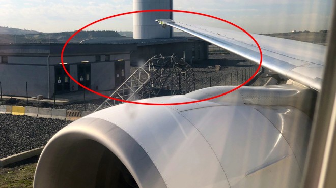 THY UÇAĞI KANADINI DİREĞE ÇARPTI