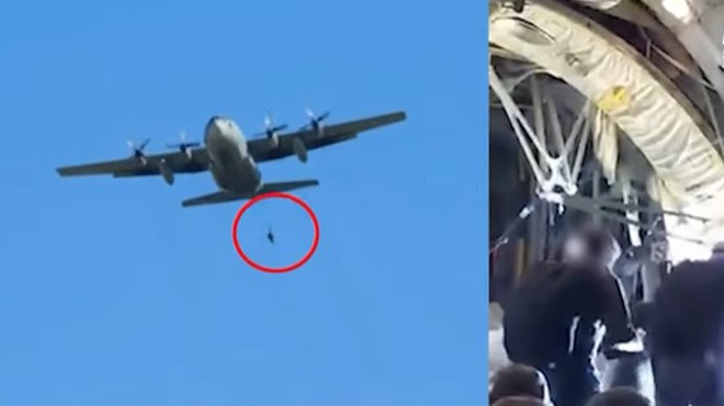 Uçaktaki subaylar asılı kalan arkadaşlarını uçağın içine çekmeyi başardı.
