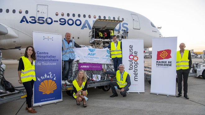 Airbus Foundation, ortakları Association Les Amis Du Liban-Toulouse, Centre Hospitalier Universitaire de Toulouse, the Municipal Council of Toulouse, the German Red Cross/Bayer AG ve Aviation sans Frontières ile birlikte Fransa’nın Toulouse şehrinden Beyrut’a 90 metreküplük tıbbi yardım ekipmanı ile yüklü bir Airbus A350 XWB uçağı gönderdi.