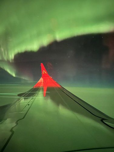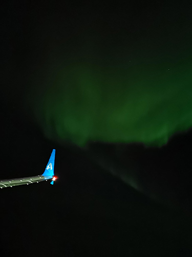 TC-OHT tescilli uçak, ABD’den Türkiye’ye uzanan yolculuğu sırasında Grönland üzerinden geçerken Kuzey Işıkları eşliğinde dikkat çekici görüntüler oluşturdu.