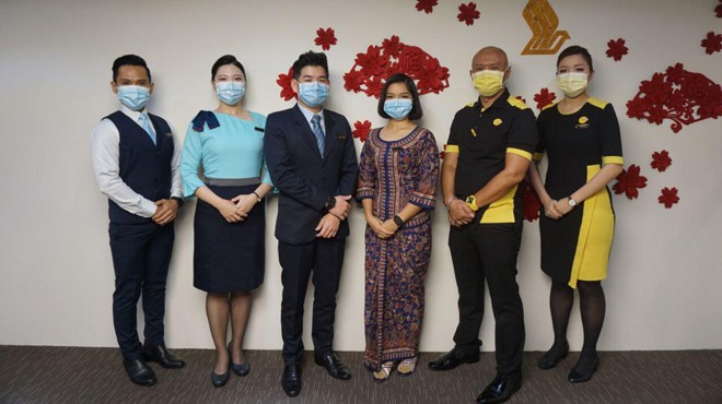 Aşılanmış mürettebattan oluşan ilk uçuş, 11 Şubat 2021'de Jakarta, Endonezya'ya yerel saatle 09:30'da (GMT+8) giden SIA uçuşu SQ956, Bangkok, Tayland'a 09:30'da kalkan Scoot'un TR606 uçuşu ve SilkAir'in MI608 uçuşu Phnom Penh, Kamboçya'ya 16:30'da hareket edecek.