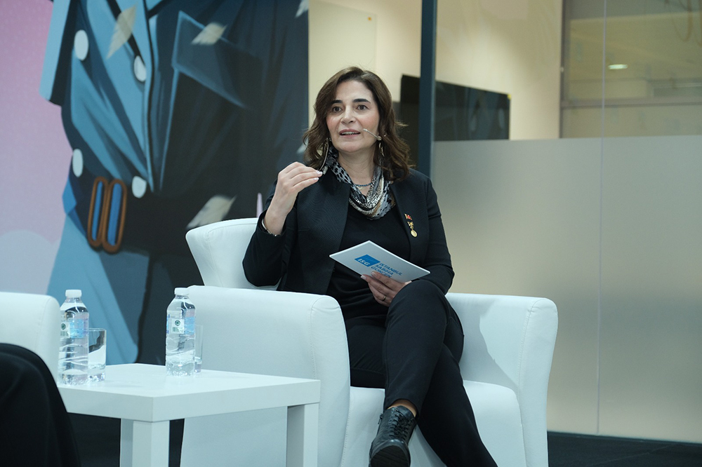Toplantının söyleşi kısmına konuk olan Türkiye'nin sesten hızlı uçuş yapan ilk kadın pilotu Emekli Yarbay Hürriyet Munanoğlu, elde ettiği tecrübeyle bugün koçluk ve mentorluk yaptığını, ülkeye hizmetin ardından insanlığa hizmet etme çabasında olduğunu vurguladı.