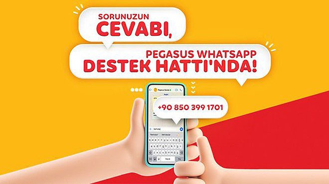 Türkiye'nin dijital havayolu Pegasus, misafirlerinin seyahatlerine dair tüm sorularını hızlı ve kolay bir şekilde sorabilmeleri ve çözüme ulaştırabilmeleri için 7/24 hizmet verecek WhatsApp destek hattını kurdu. +90 850 399 17 01 numaralı destek hattında sunulan hizmet kapsamında bilet işlemleri/sorgulama, kampanya bulma, uçuş durumu, bagaj hakkı, kayıp hasarlı bagaj işlemleri, başvuru sorgulama, sadakat program üyeliği gibi konularda sorular sorulabiliyor. Destek hattında ayrıca hava yolu seyahatiyle ilgili akla gelebilecek soruların ve cevaplarının yer aldığı "Sıkça Sorulan Sorular" bölümü de bulunuyor.