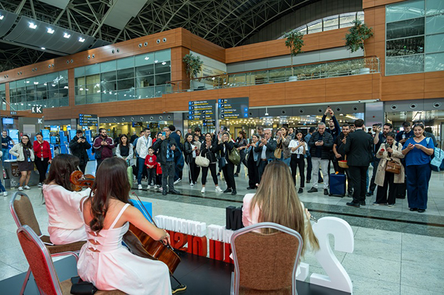 Havalimanındaki kutlama etkinliği saat 10:00'da “Cumhuriyet’in Müziği” konseri ile başladı. Giden katı iç hatlar kapısının önüne konumlandırılan “"Cumhuriyeti biz böyle kazandık" temalı fotoğraf alanının önünde gerçekleştirilen etkinlikte, yolcular trio’nun seslendirdiği eserlere eşlik ederek kutlamalara katıldı.