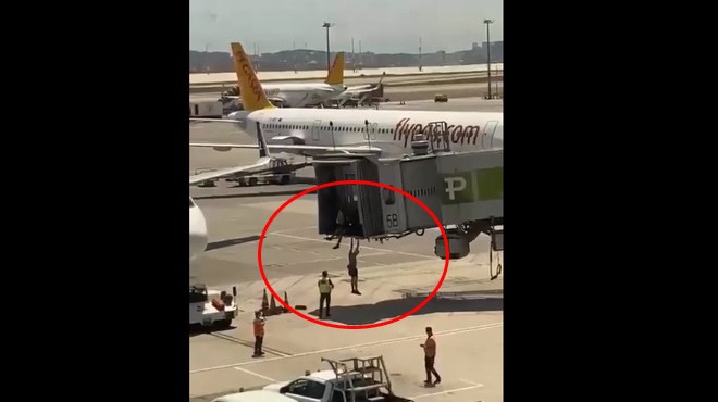 Son dakika… İstanbul Sabiha Gökçen Havalimanı’nda bugün hareketli anlar yaşandı. Uçağını kaçıran bir kişi Anadolujet uçağının bulunduğu körükten aprona atladı. İşte o anlar…