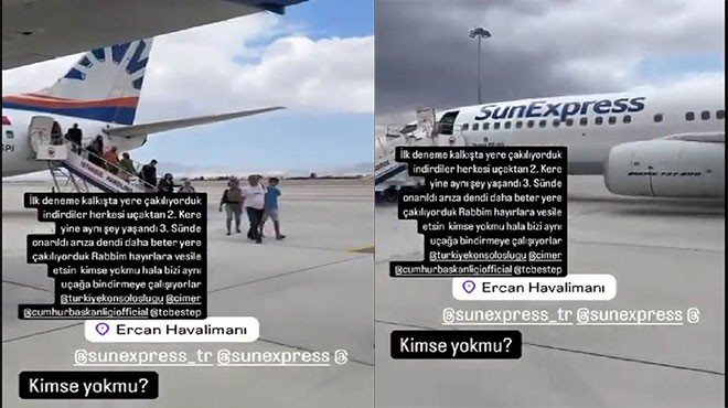 Sunexpress'in KKTC Ercan-İzmir seferini yapacak uçağı pistte iki kez deneme yapmasına rağmen havalanamadı. Uçaktan indirilen yolculardan ağlayanlar ve sinir krizi geçirenler oldu.#Sunexpress #Ercan #KKTC #Boeing737 #panik #korku #pist pic.twitter.com/tIxfkyYcUD
