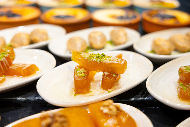 Misafirlere sunulan menüde Altınözü zeytinyağı, zahter, oruk ve kaytaz böreği eşliğinde yoğurt aşı, zahter salatası, cevizli biber, tahinli tarator, biberli ekmek, öcce, tuzlu yoğurtlu lahana sarma, Belen tava, Hatay usulü kireçte kabak ve daha birçok yöresel lezzet yer alıyor. Etkinlik menüsündeki tüm ürünler beşi kadın kooperatifi olmak üzere toplam 10 farklı Hataylı yerel üreticilerden tedarik ediliyor.