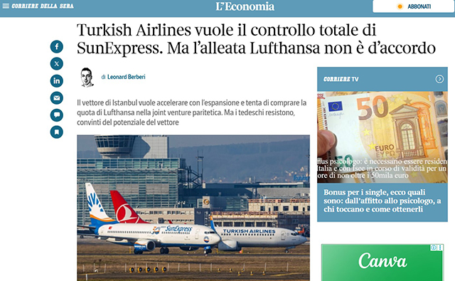Kaynaklar, İstanbul merkezli Türk Hava Yolları'nın faaliyetlerini genişletmek için çaba gösterdiğini aktarıyor. Avrupa ve Orta Doğu arasındaki tüm pazar fırsatlarını değerlendirmek için (ayrıca iştiraki AJet'i de daha iyi değerlendirerek) SunExpress'i mümkün olan en kısa sürede entegre etmek istiyor ve belki de yeni hükümetinin Ankara ile mükemmel ilişkileri olan Suriye hava sahasının yeniden açılmasından da faydalanmaya çalışıyor.
